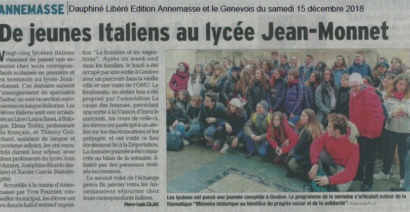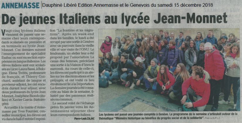 Les élèves de 1ère et T° Euro Esabac italien ont accueilli durant une semaine, leurs correspondants de Bologne. Leur séjour a été défini par les professeurs d'Italien Mmes BIONDO (EURO) et BALLIANA (ESABAC) et M. Garcia, (DNL Histoire Géo)